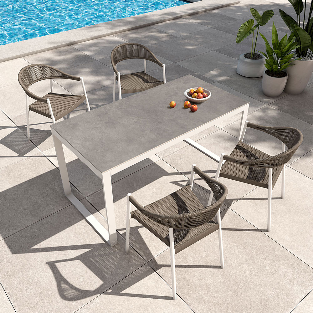 Para terrazas de jardín diseñadas por Kactus Republic, encontrarás todo tipo de mesas para terraza como mesas de comedor, mesas de juego, mesas de estar, mesas camastros, etc. Todas ellas son de muy buena calidad, diseñadas específicamente para que puedas disfrutar de tu terraza sin ningún problema. Disponemos de una gran variedad de colores y tamaños, así que estás seguro de que encontrarás la mesa perfecta para ti. Si estás buscando una mesa para tu terraza que se pueda adaptar a cualquier estilo, Kactus Republic es tu hogar. Te ofrecemos modelos sencillos y elaborados, con formas modernas y con encanto retro. Así pues, está seguro de encontrar la mesa perfecta para ti en nuestra tienda online.